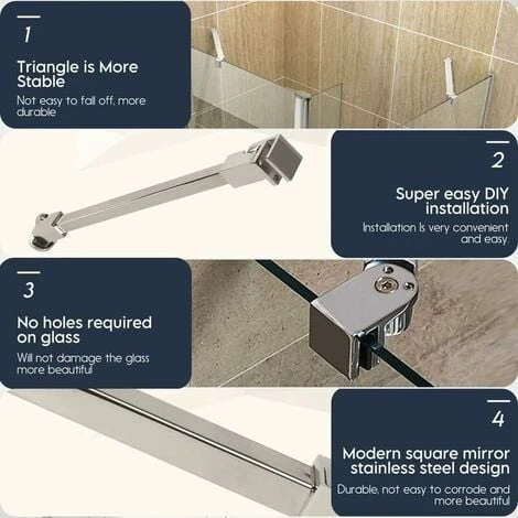 - 【Easy DIY installation】: the arm provides additional support for the glass without having to drill holes in the glass as it simply attaches to the glass with the included spacers. Use the L-shaped screwdriver (included) to loosen the set screw and tighten the screw. Suitable for almost all shapes of shower glass.