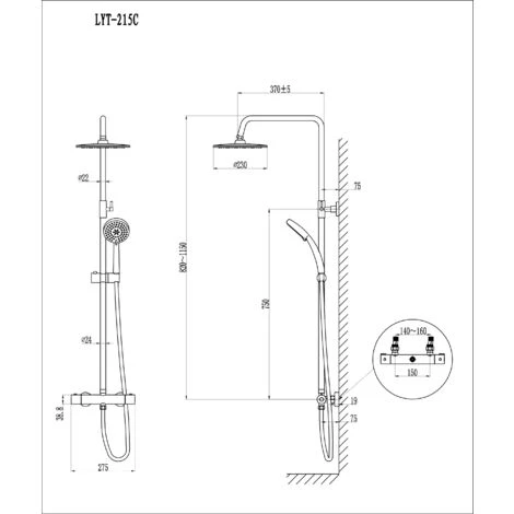 - Shower Top to Bottom Adjustability: 820mm a€¡° 1150mm