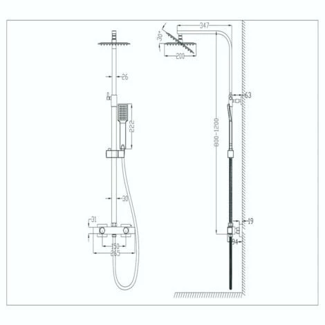 - 200mm x 200mm shower Head adjusted up to 17 degrees from vertical