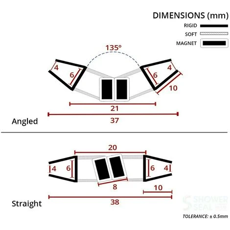 This pair of shower seals are comprised of a high quality rigid PVC U section designed to comfortably grip any glass ranging from 4mm to 6mm thick with no need for any additional adhesive. They also includes a magnetic strip covered in a white plastic to match the rest of your enclosure, these will hold the door shut when showering although are still easy enough to open once finished.