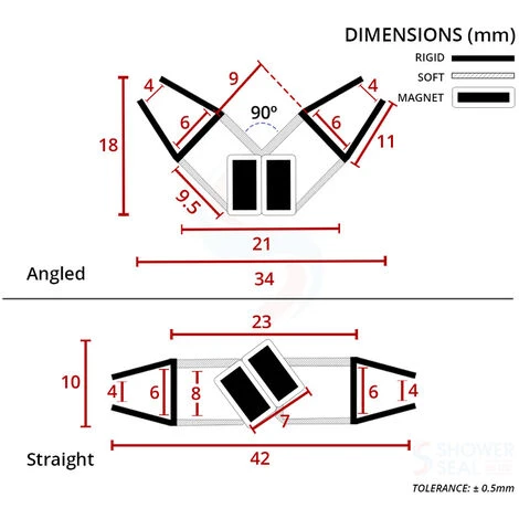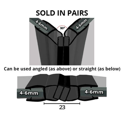 These seals are found vertically, usually on quadrant enclosures although some bath screens and other doors can utilise these. If you’re using the seals at 180° and have sliding doors then as long as your gap is no greater than 23mm when the doors are closed then these seals should be suitable. If you’re using the seals at 180° and have hinged/pivoting doors then your gap would need to be exactly 23mm as otherwise the two magnetic strips will not quite line up and the seals may not function as intended.