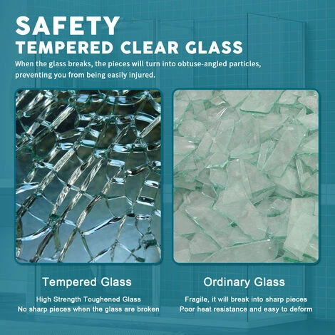 Each panel is manufactured from 8mm easy clean safety glass,What’s more,each panel comes with gorgeous polished aluminium profiles and can be fitted for either left or right hand entry,It also includes a T-shaped bracket,which fixes to your wall,ensures a safe and solid construction.