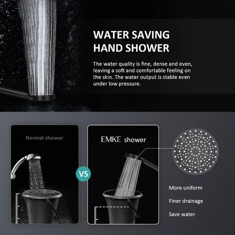 Water Saving Shower Head Pressure Boosting: EMKE water saving shower heads feature 6 spray modes and are equipped with a push-to-switch design, so you can easily switch to the desired spray mode with one hand to meet your showering needs.