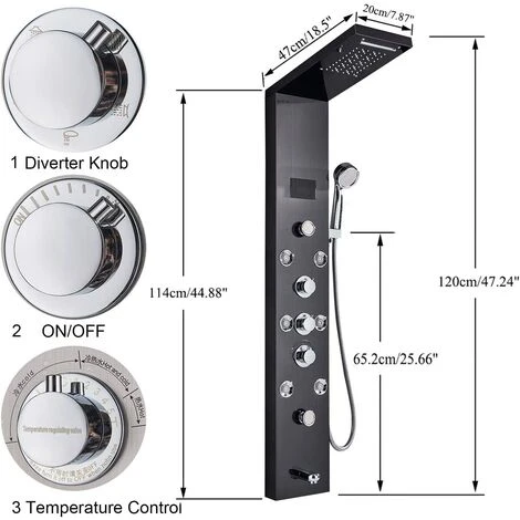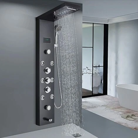 Shower panel with 5 functions:rainfall and waterfall shower head, handheld shower sprayer,body massage jets,tub spout,for daily bathing and cleaning