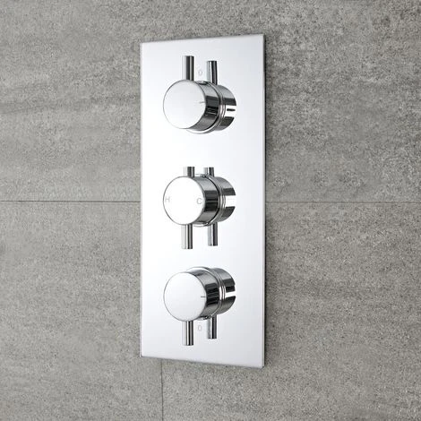 – Solid brass triple shower valve incorporates ceramic disc technology to prevent leaks and drips