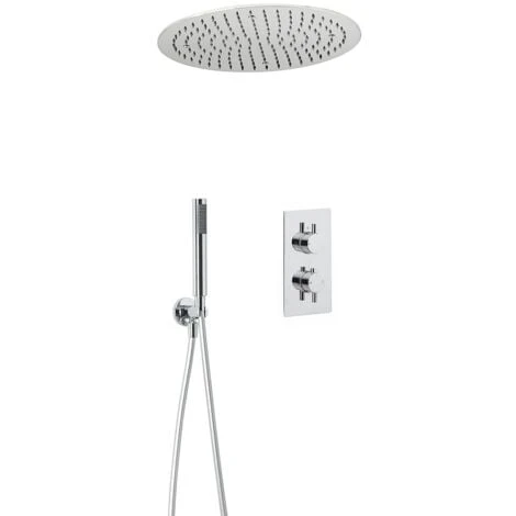 – Anti-corrosive stainless steel ceiling-mounted 400mm round recessed shower head
