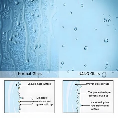 These 6mm glass shower door which both side coated with NANO waterproof coating, so whether you use the left or right side, it can be waterproof, which is not available in other shower door panels.