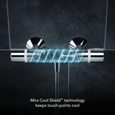 The 90mm showerhead, finished with chrome plating and connected to the main body of the unit via a 1.25m corrugated hose, combines superior performance with a sophisticated aesthetic. The twin hot and cold controls on either side of the central unit allow you to easily adjust both the temperature and flow, while the Mira Magni-floTM technology is capable of delivering up to three times the intensity of a standard shower – even when operating on a low-pressure system.