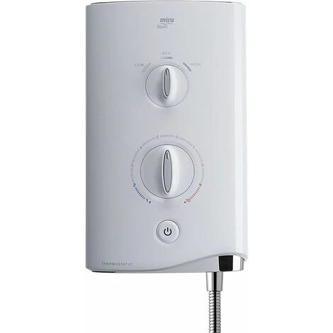 Easy To Use Temperature Control The Mira Sport Thermostatic electric shower couldn’t be easier to use. With a simple push on the on/off button you can bring your shower to life and shut it back down again. The are two controls – one to select how powerful you want your shower (low, eco or high) and one to adjust the temperature, making it quick and straightforward to get your shower just right. |