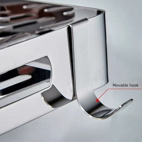 Double-layer large capacity:30cm x 21cm x 4.5cm,The installation height can be adjusted as you like. There are two hooks on which you can hang your towel or bath mitts.