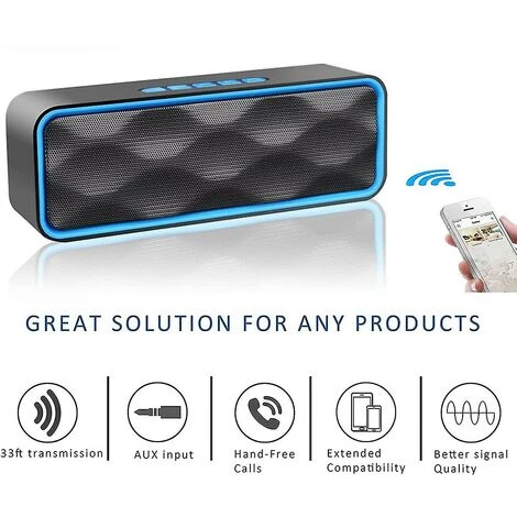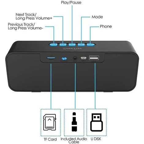 - Function: Support Bluetooth Connection, Hands-free, TWS Couplet, TF Card, USB, FM Radio, AUX;
