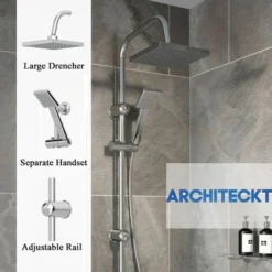 Bathroom Shower Kit Adjust Riser Rail Hose Twin Shower Heads Chrome Square Set