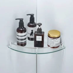 Livingandhome 2 Tier Glass Corner Floating Storage Shelf Bathroom Shower Organizer