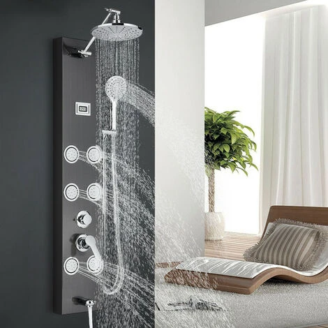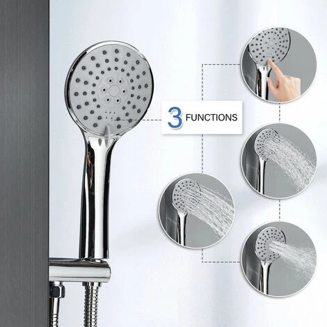 Function : The multifunctional massage system shower panel has five functions: rainfall, waterfall, massage nozzle, bathtub nozzle, and hand shower. You can switch functions according to your needs.