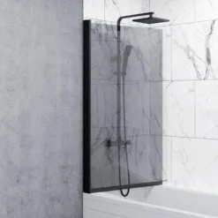 Over Bath Shower Screen Door 800mm Frameless Black Square 6mm Safety Glass Panel