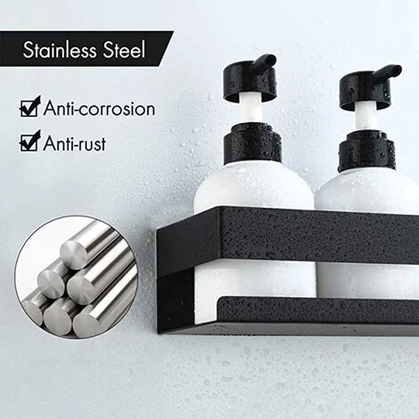 Stainless Steel The shower shelf is made of high quality and durable stainless steel (S304). It is very suitable if you want to install it in the bathroom or kitchen.