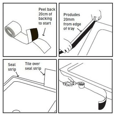 3 Determine the length of strip required to seal around the shower tray and cut to length with scissors. (Ensure you cut at least 20mm longer than needed).