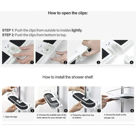 Save Space: The bathroom accessory makes good use of the space around the bathroom and can store most bath products. Loop design makes it easy to install in minutes. Please note: Make sure the distance between the shower rail and the wall is at least 3.4cm and it can be used.