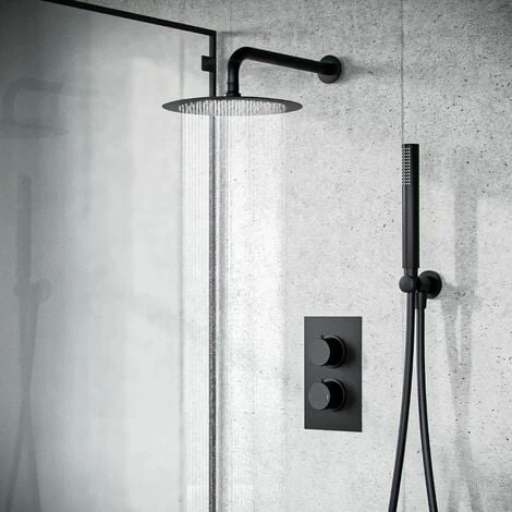 The concealed shower valve has two easy controls, for temperature and flow. The valve body comes with a contemporary square face plate.